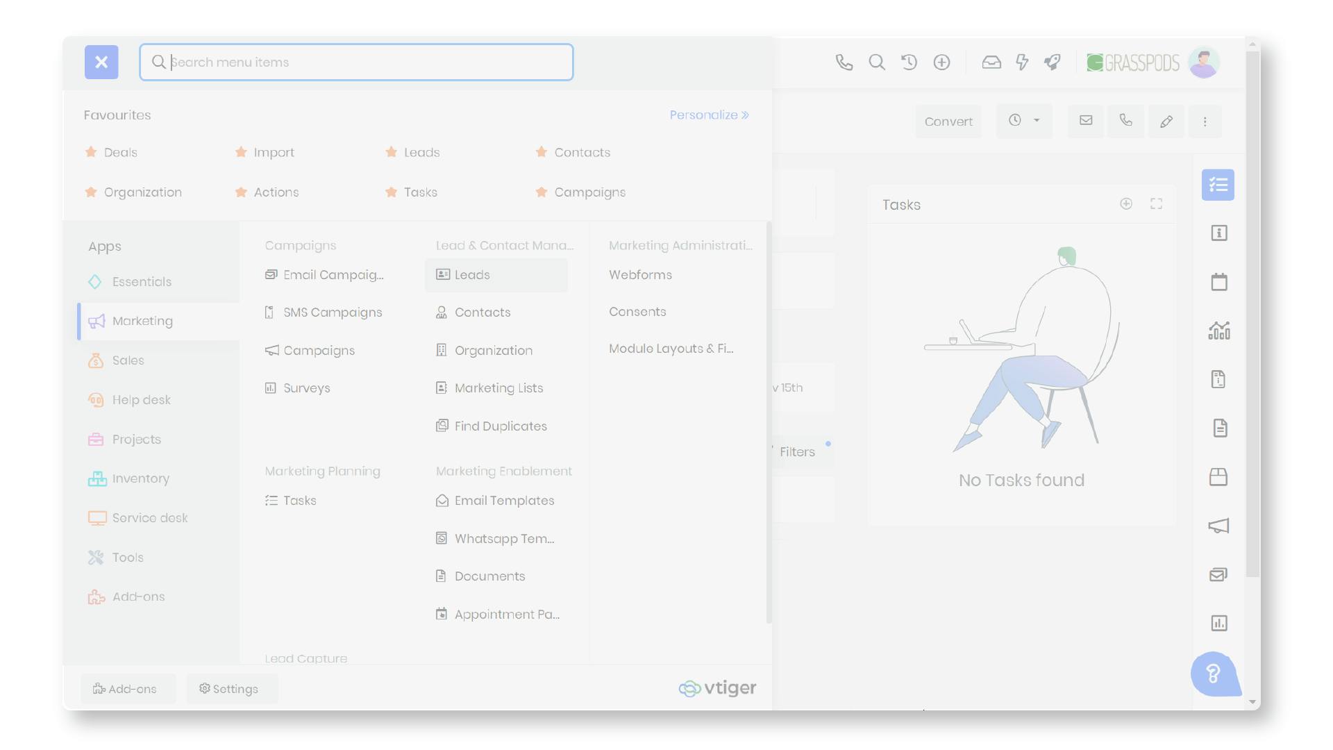 A wide range of integrations lets Vtiger CRM import data and automate actions in the other apps you use.