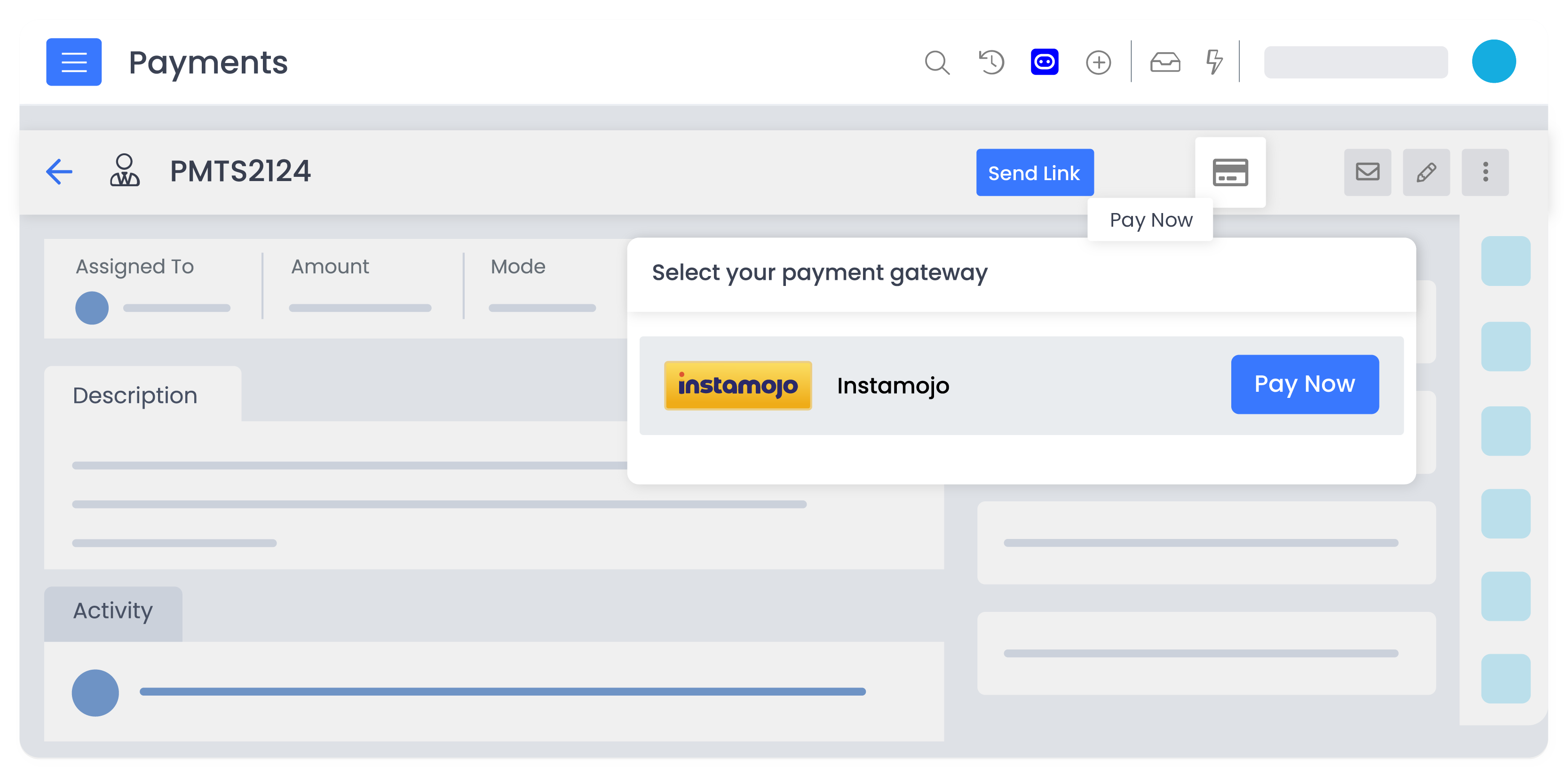 With this integration, you can manage all your sales processes from lead generation to payment collection within a single platform. This can streamline your financial dealings making it more transparent and less prone to errors. Also, you can make or receive payments directly from CRM without opening multiple tabs.