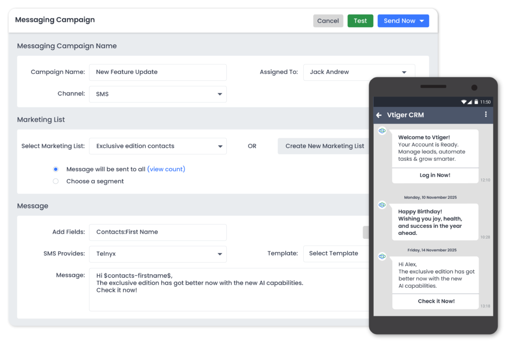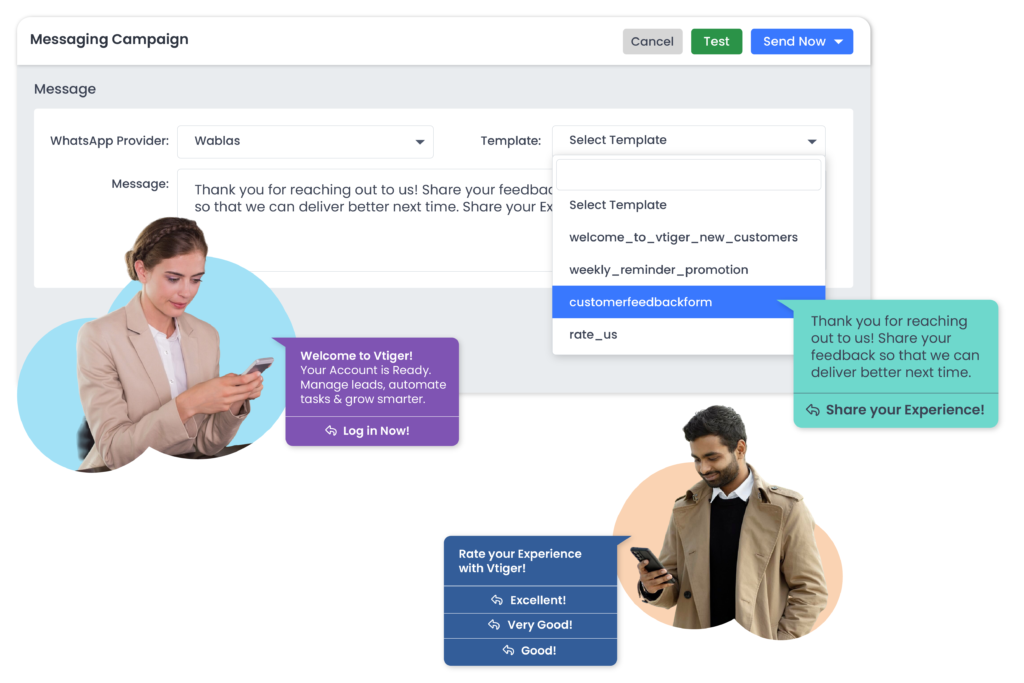 Since all customer data is already stored in Vtiger CRM, you can easily segment audiences and send relevant messages in just a few clicks. This targeted approach boosts engagement and conversion rates.